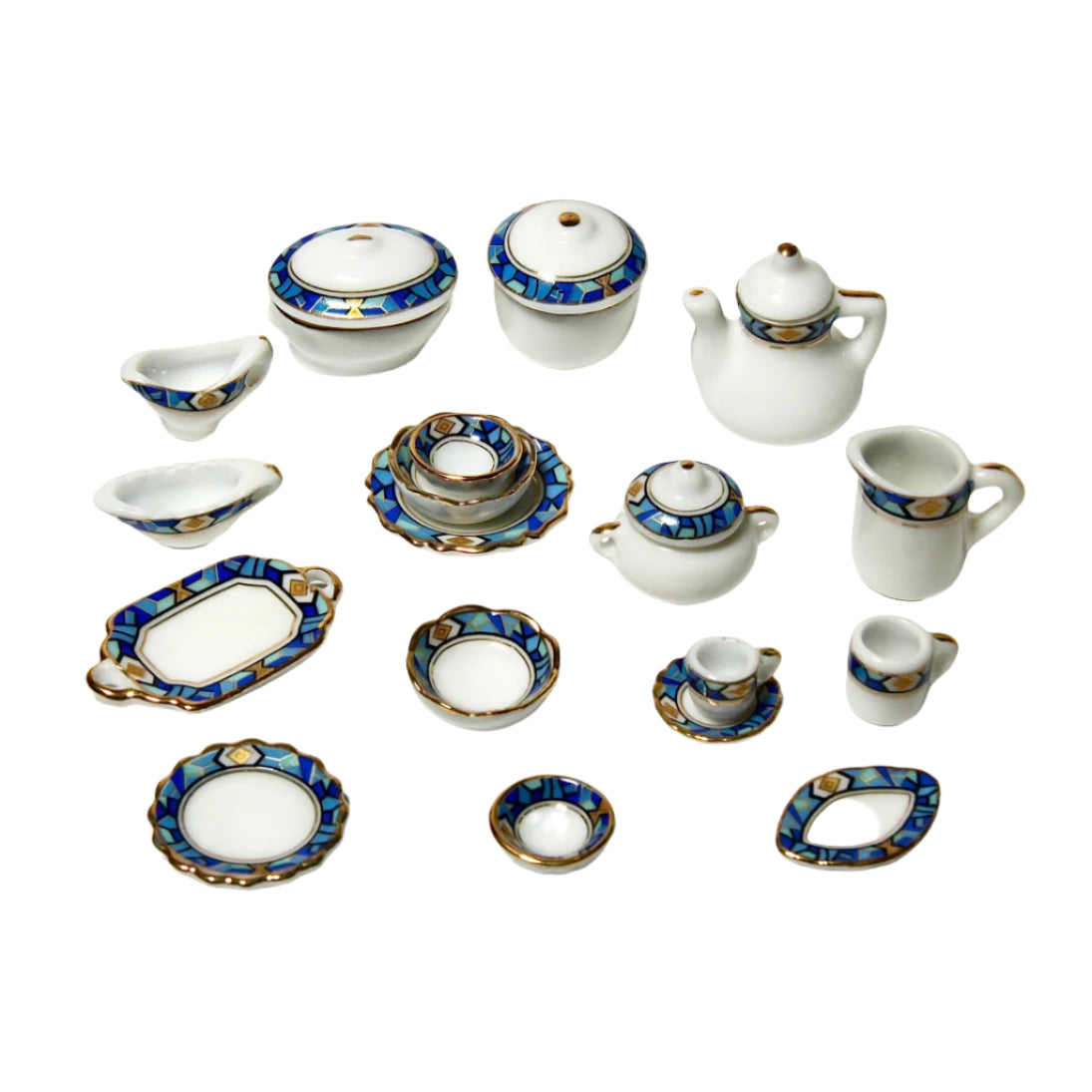 Katso kaikki tiedotSaksalaisen Reutterin laadukkaat miniatyyriastiat ja mannermainen aamiainen. Miniatyyriposliiniastiat sopivat 1:12 mittakaavan nukkekotiin.