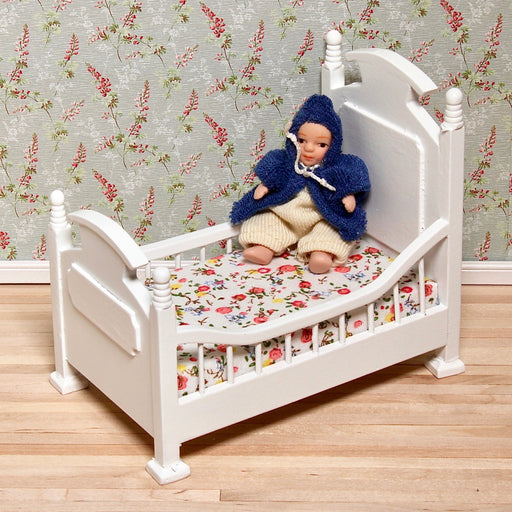 Katso kaikki tiedotPienessä sievässä nukkekodin lapsen sängyssä on koristeelliset yksityiskohdat ja erityisen kauniit päädyt. Pituus noin 12(b)x leveys 7,4(d)x korkeu...