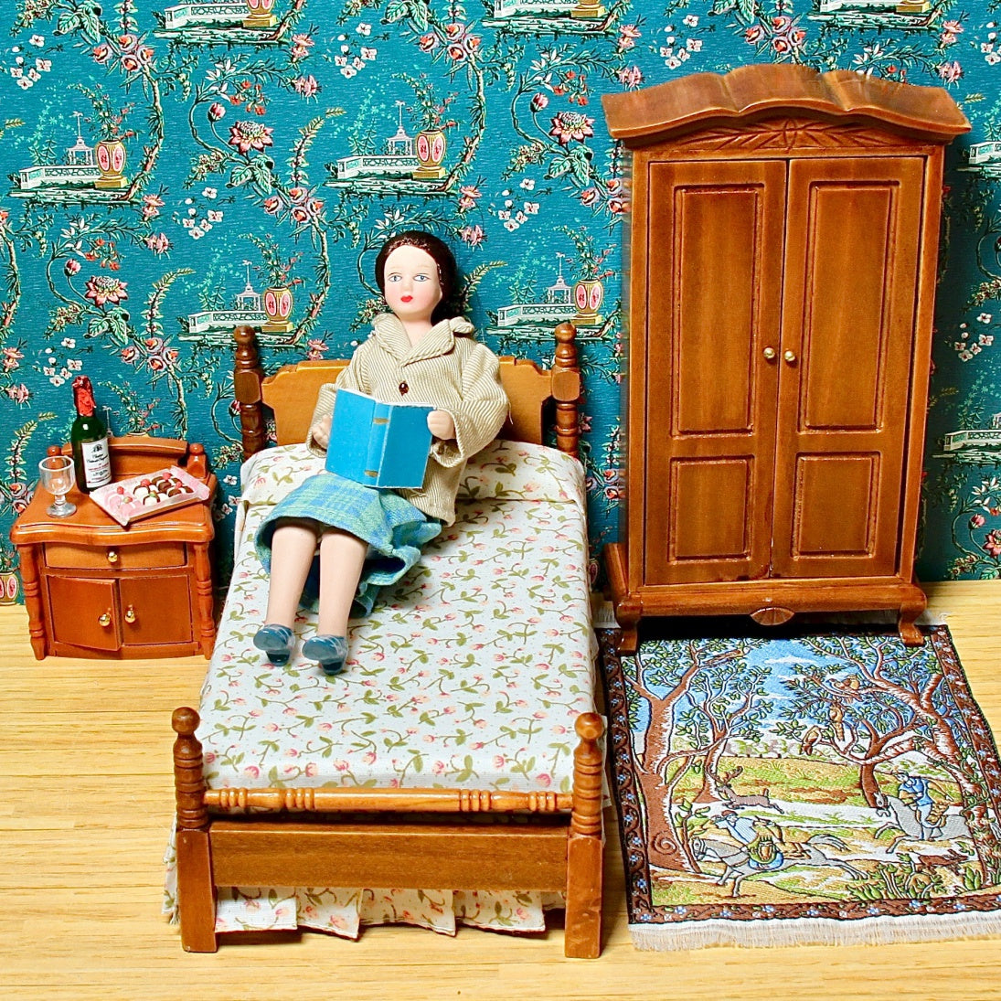 Vanhanajan 'Bateau' - mallinen sänky pähkinänsävyistä puuta. 16 x 8,5 x 11,5cm Minimaailman nukkekodin huonekalut ovat mittakaavaa 1:12. Kullanhoht...