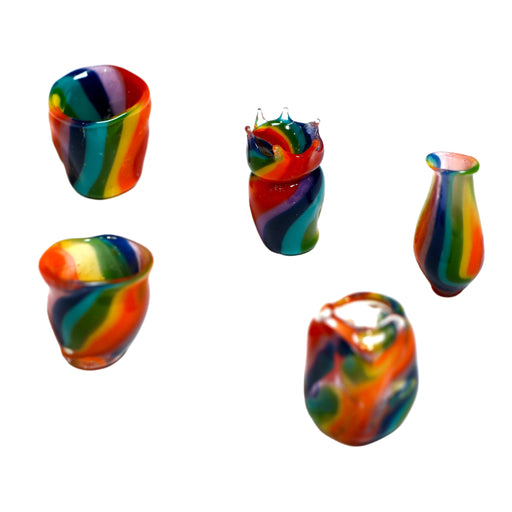 Katso kaikki tiedotErimallisia luonnonvaaleita maljakoita, joissa häivähdys punaista tai sinistä väriä. Maljakoiden korkeudet vaihtelevat: 2 cm, 2,5 cm ja 2,7 cm. Jok...