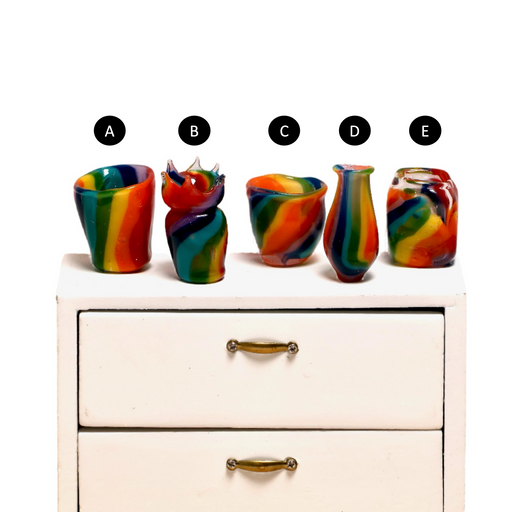 Katso kaikki tiedotRajoitettu erä käsinpuhallettuja lasimaljakoita sateenkaaren väreissä. Englantilaista käsityötä. Kutakin mallia on vain 1 kpl. Maljakoiden korkeude...