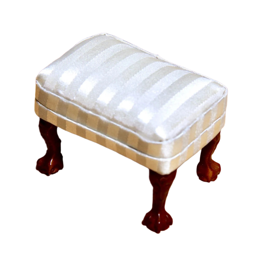 Katso kaikki tiedotSatiininhohtoinen pikkujakkara. Leveys n 4,8 x syvyys 3,4 x korkeus 3,4 cm. Sopii jalkarahiksi ylellisen valkoisen nojatuolin kanssa.