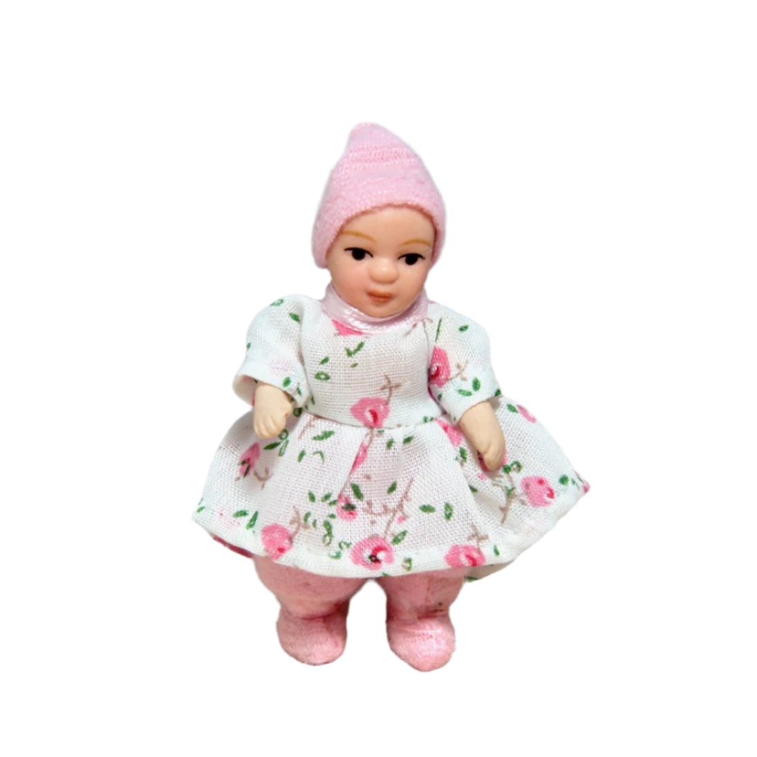 Katso kaikki tiedotPieni suloinen vauvanukke, joka mahtuu hyvin syöttötuoliin ja lastenvaunuihin. Pituus 6 cm. Jäsenet taipuvat olkapäistä ja lonkista.