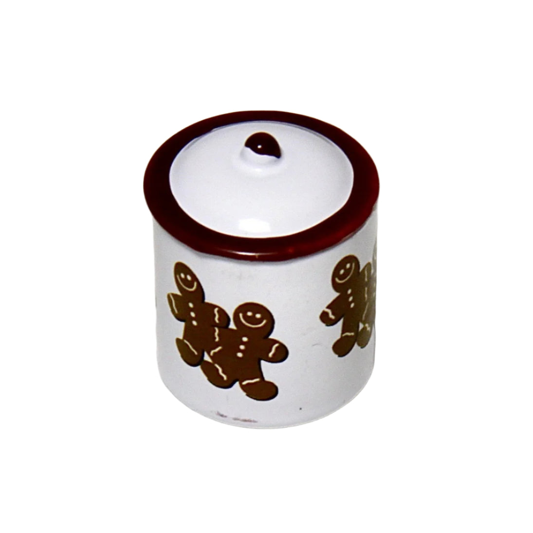 Pieni metallinen purkki nukkekodin joulupipareille tai makeisille. Nukkekodin purkki, korkeus n 1,7- 2cm (kannen kanssa). Halkaisija n 1,5 cm.Valko...