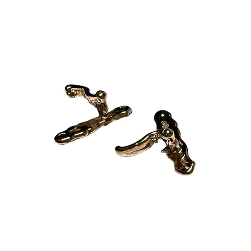 Kaksi kahvaa avaimenreiällä. Tummaa messinkiä.Patinoitua messinkiä. Pituus noin 2 cm.