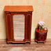 Korkealaatuisen ja sirolinjaisen kaapin leveys n. 4,4 x syvyys 3 x korkeus 5,5 cm. Kalusteen ovi ja pikkuruinen laatikko avautuvat.