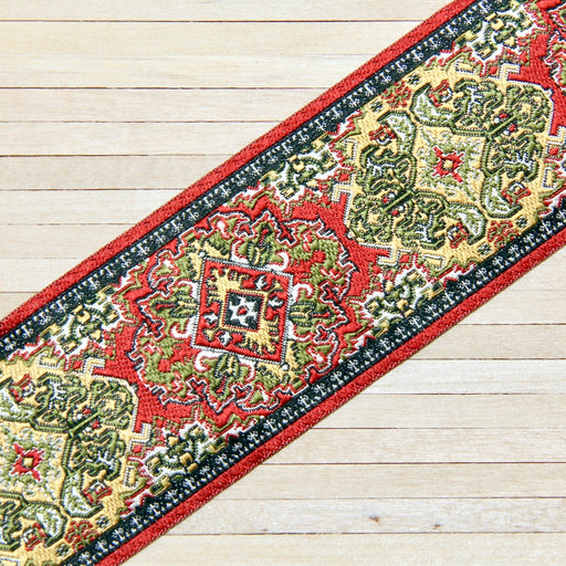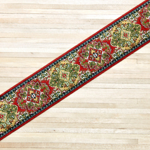 Punavihreä kudottu käytävämatto.Aito kudottu matto 4 x 22,5 cm