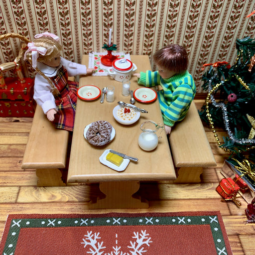 Katso kaikki tiedotKlassiset joulun värit punainen, vihreä ja valkoinen tuovat joulutunnelmaa nukkekotiin tai tonttutaloon ja asetelmiin. Maton pituus 16 x leveys n. ...
