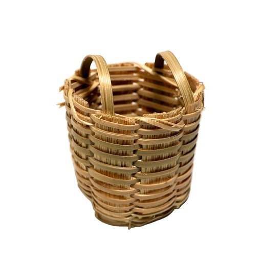 Tiheästi punottu pikkukori kantokahvalla.Korin pohjan halkaisija on noin 1 cm. Koriosuuden korkeus n. 1,5 cm ja kokonaisuuden korkeus kahvan yläreu...