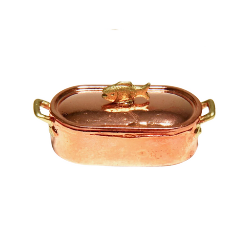 Katso kaikki tiedotKorkealaatuinen ja painava nukkekodin kattila tuo vanhanajan tunnelmaa ja hohtoa pienen talon keittiöön. Soikean kattilan kannessa on kaunis kalanm...