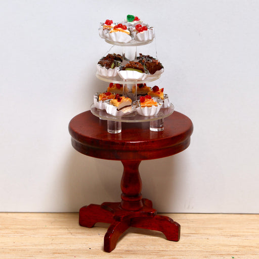 Katso kaikki tiedotNäyttävä 3-kerroksinen vati täynnä herkullisia miniatyyrileivonnaisia. Tuote sopii hyvin nukkekodin kahvilaan, ravintolaan ja juhliin. Alimman kerr...