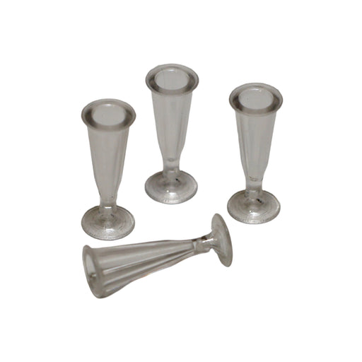 View full detailsSmall, empty champagne glasses for dollhouse parties. The narrow and tall glasses are made of plastic. The diameter of the stem that goes on the ta...