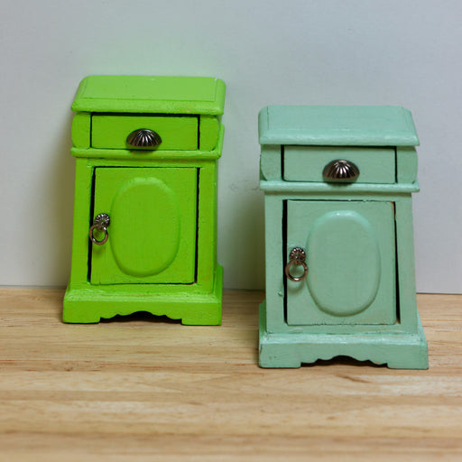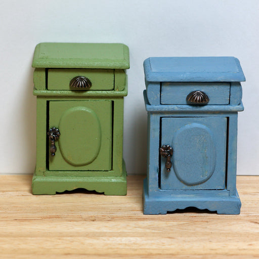 Customize the dollhouse furniture with different handles and knobs. There is a huge selection of drawer pulls, cabinet handles and dresser knobs. The material is typically metal, wood or painted plastic. Some of the products can be glued as they are, but some require a small hole to be drilled for installation.