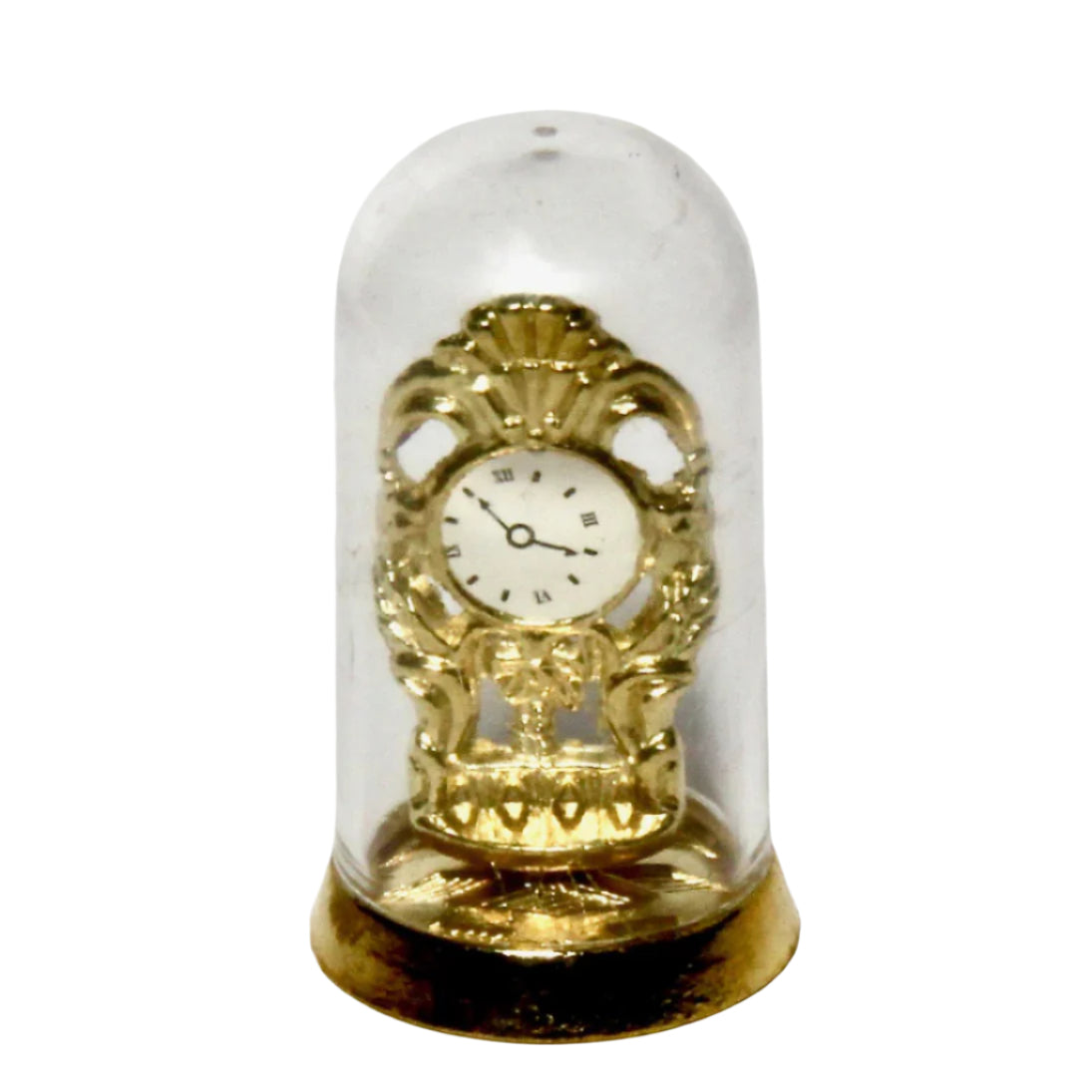 Decorative brass clock for a dollhouse. height approx. 4.5 cm, base diameter approx. 2.5 cm The 'glass dome' is plastic. Please note that the di...