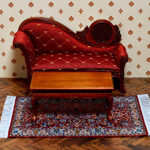 View full detailsThe stylish dollhouse sofa is upholstered in a woven 'tweed-like fabric'. The legs of the furniture are made of walnut-colored wood. The width of ...