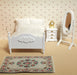 Dollhouse double bed sheet, blanket and two pillows.
