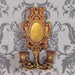 The decoratively carved wall sconce is patinated gold and brick red in color.