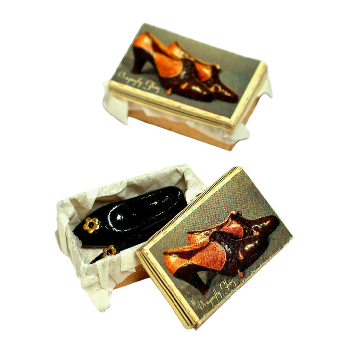 This handmade, old-fashioned miniature product is perfect for a shoe store decoration or for the lady's wardrobe in a dollhouse.