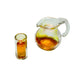 Jug height approx. 2 cm and the height of the glass is about 1.5 cm.