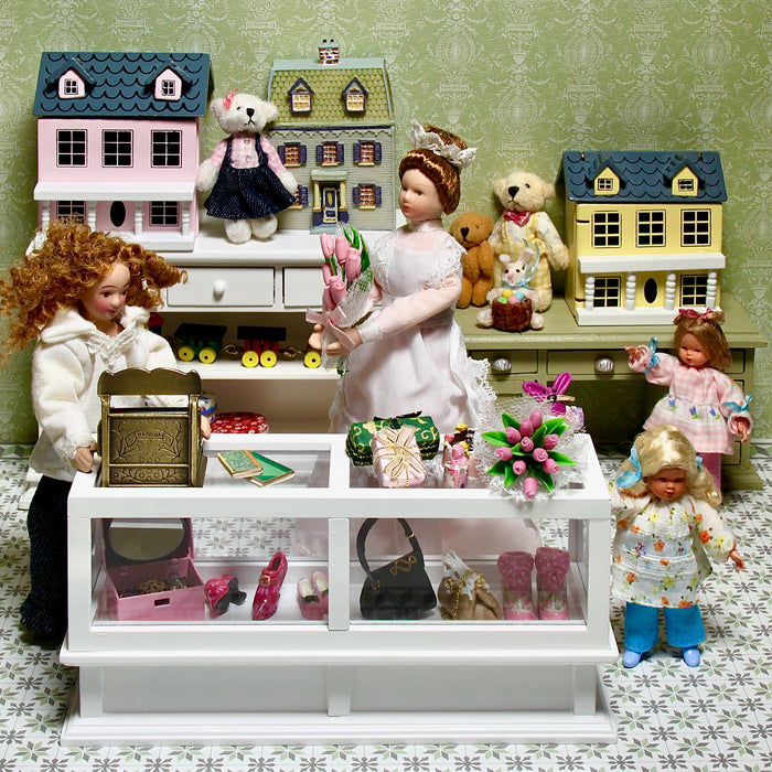 The dollhouse has its own dollhouse for the children's room, with an opening roof and front wall.