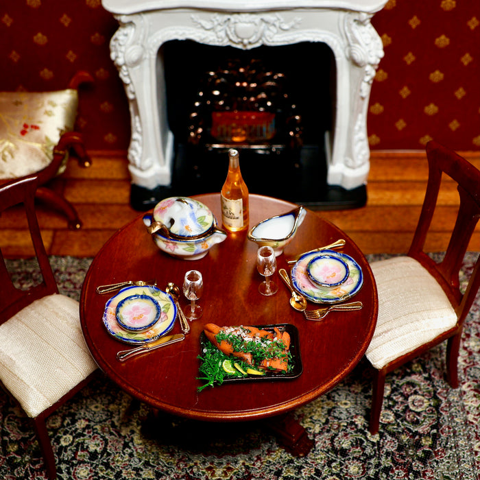 The decorative leg part brings showiness to this table. The product card shows a picture of the dining room.