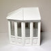 The beautifully shaped building has Plexiglas windows and an opening double door in front. The white back wall slides aside to decorate the conservatory.
