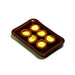 Pienet leivonnaiset metallisella pellillä. miniatyyrit on liimattu pellille, mutta näyttäisivät irtoavan aika helposti. Metallisen uunipellin koko on noin 2,7 x 2 cm.