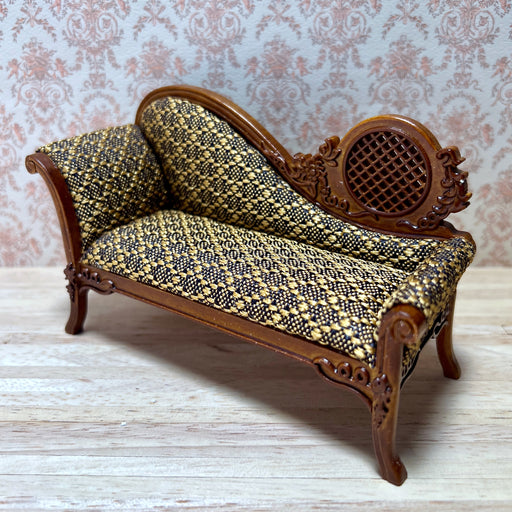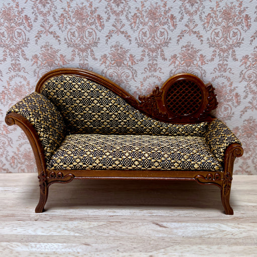 Se alla detaljerDen eleganta schäslongen är klädd i glänsande satin. Ryggstödet är klätt på båda sidor. Soffstommen har dekorativa sniderier och eleganta linjer. ...