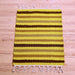 En matta till ett dockskåp, handvävd på stora vävstolar. Mattans mått är cirka 10 x 16 cm. Längden utan fransar är cirka 14 cm.