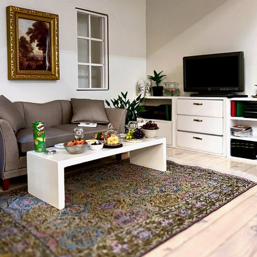 Se alla detaljerEn blommönstrad vävd matta för ett dockhus. Äkta turkisk vävd matta med fransar. 10 x 23 cm. Även andra storlekar finns i samma serie. Äkta tu...