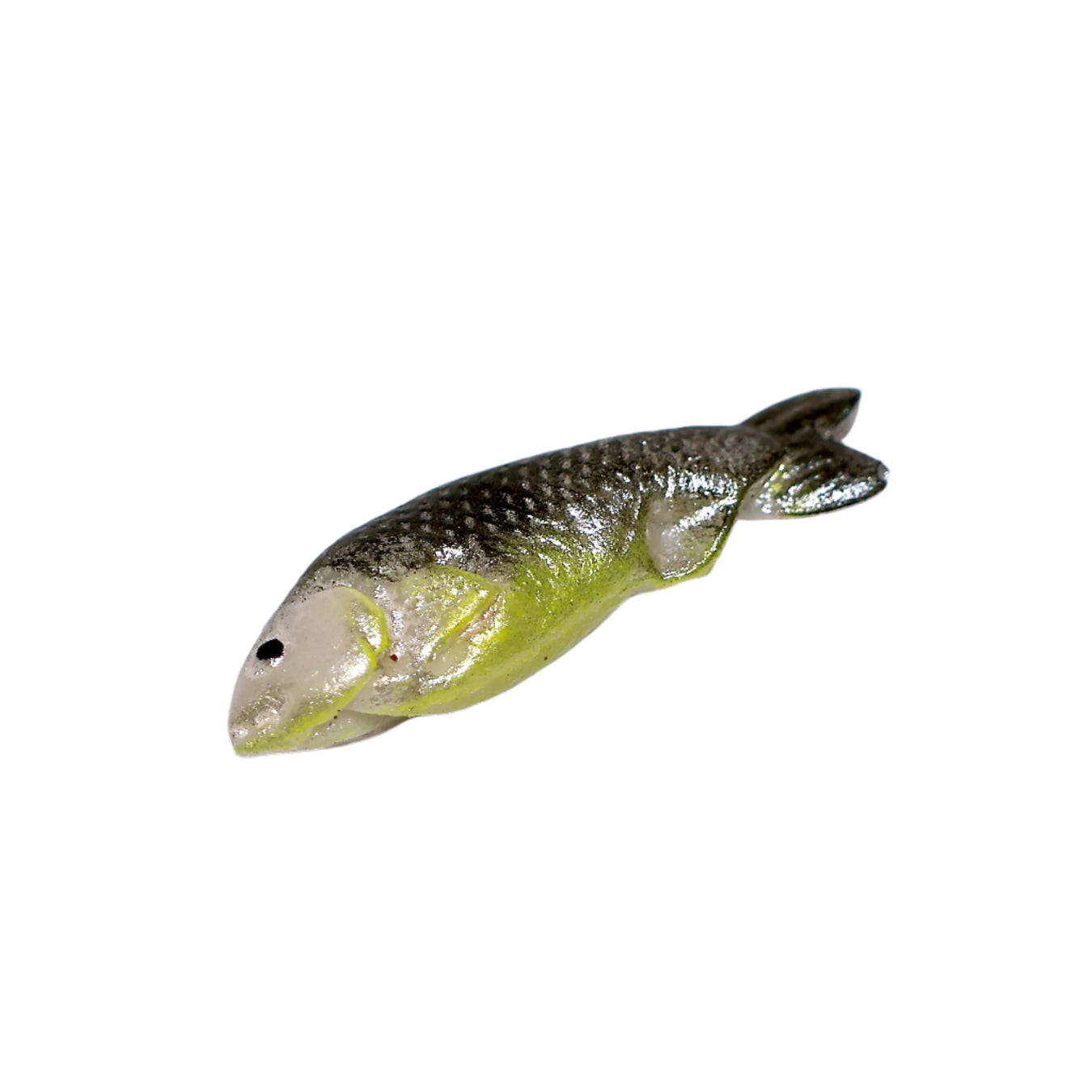 Se alla detaljerEn liten fisk till ett dockskök eller en fiskdisk i en butik. Längd 2 cm x höjd på högsta punkt 0,6 cm. Fisken är rak och omålad undertill.
