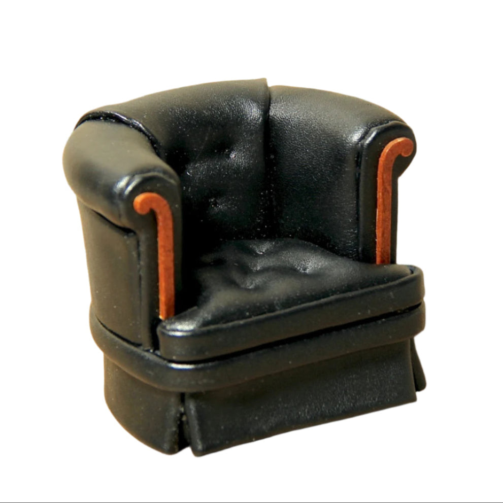 Se alla detaljerHögkvalitativ dockskinnssoffa i engelsk Chesterfield-stil. Bredd 13 cm vid soffstommen och ca 14,5 cm vid armstödens bredaste del. Höjd 7 cm och...
