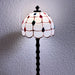 Golvlampa, vit skärm med färgade dekorationer, LED