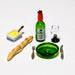 En flaska vin är en klassisk inflyttningspresent, även till ett dockhem. Rödvinsflaskan i glas är en högkvalitativ miniatyrprodukt.